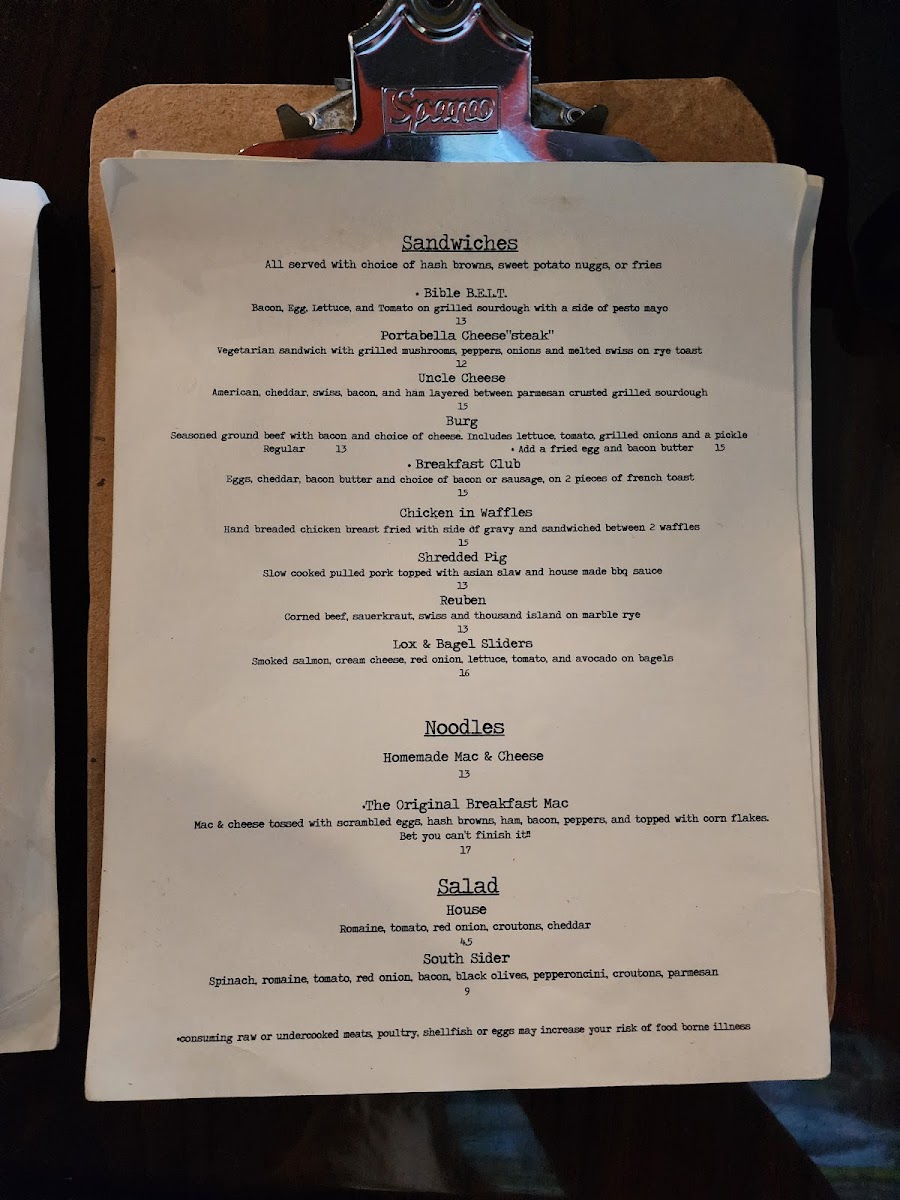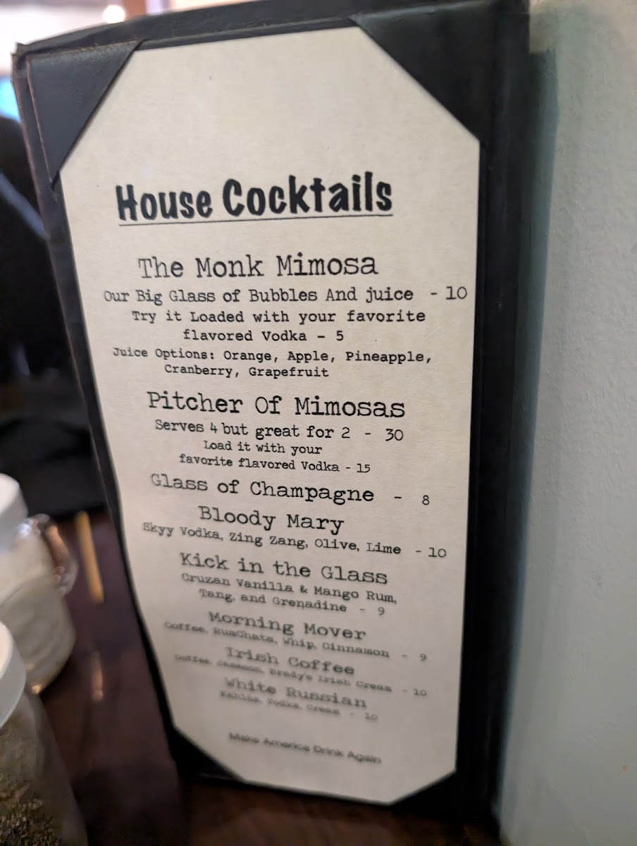 The selection balances casual bites and more substantial offerings, fitting naturally with the pub’s lively but relaxed atmosphere where local flavors meet familiar favorites. The menu encourages a comfortable pace—whether grabbing a quick breakfast on the go or settling in for a slower brunch experience that pairs well with mimosas or freshly brewed coffee.